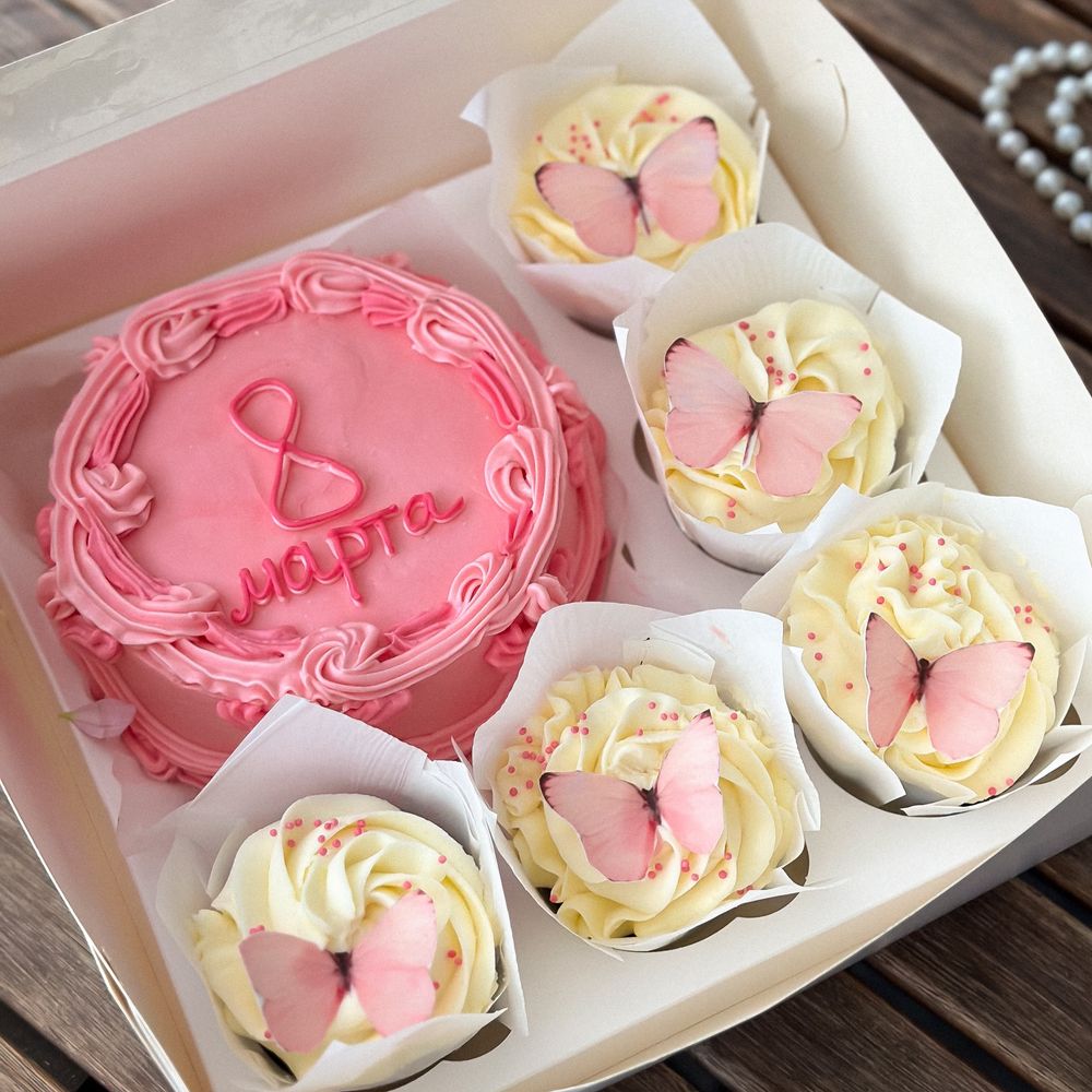 Бенто и капкейки "8 марта" с бабочками